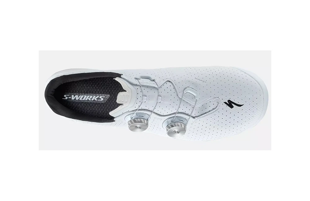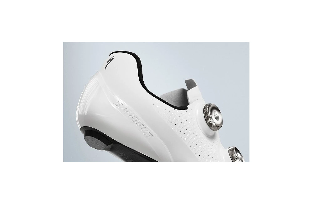 - Le câble BOA® a été décalé vers le bas et incliné pour empêcher le soulèvement de la voûte plantaire dans la chaussure. Cette évolution a permis de supprimer le Velcro® avant de la S-Works 7 tout en offrant une structure améliorant la puissance et éliminant les pressions ou les pincements indésirables