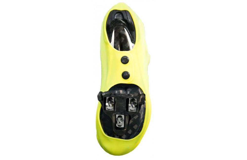 Le silicone imperméable et coupe-vent protège vos pieds et vos chaussures de vélo des éléments. La conception brevetée n’utilise pas de fermeture éclair et s’attache facilement avec un bouton-pression sous votre chaussure.